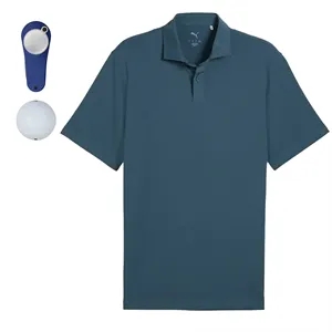 Complete golf bundle: a soft, eco-friendly PUMA polo, 3 tour-level Srixon balls, a Pitchfix tool, and a premium towel.
