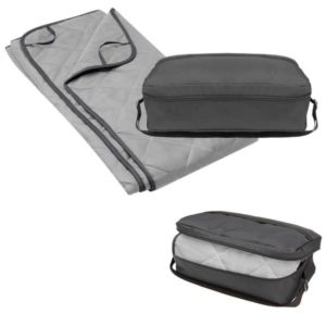 55" x 59" packable blanket with zippered carry case.