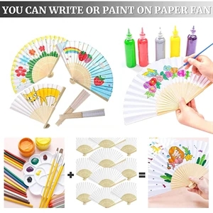 14.37" x 8.26" bamboo wood and paper folding hand fan in assorted colors.