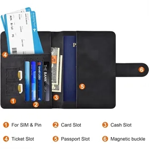Features a magnetic button and multiple slots for your passport, ,air ticket, business cards, credit cards, and even SIM cards.