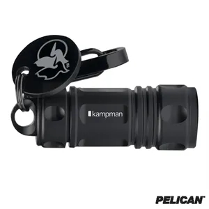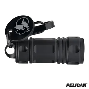 0.56" x 0.56" x 1.5" Pelican™ keychain with aluminum LED flashlight and steel clip.