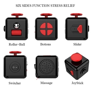 Fidget cube with seven fidget tools.