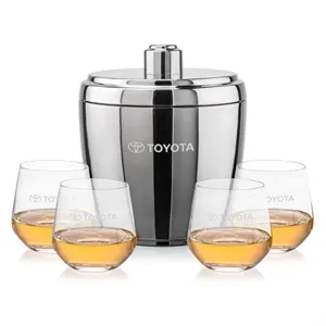 The Pescara Ice Bucket & On-the-Rocks Set combines modern style with practical elegance for the perfect entertaining experience.