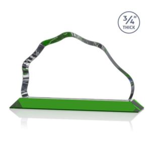 The Petersen Award features a simple mountain shape with a sinuous, highly polished bevel with a Green optical crystal base.