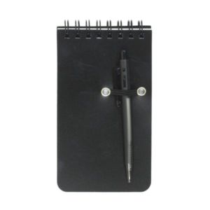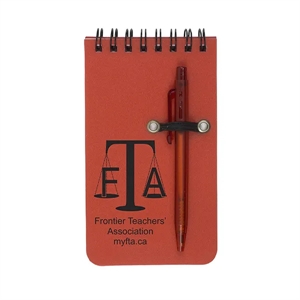 5 1/4" x 3" flip open 50 page spiral bound jotter notepad with polypropylene cover and pen with loop holder.
