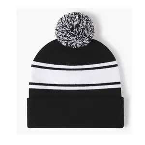 Soft striped pom pom beanie with cuff - perfect for winter branding, team gifts, and holiday promotions.