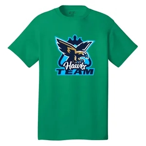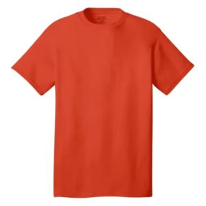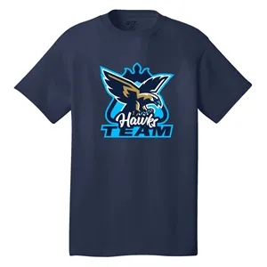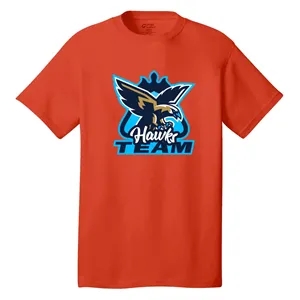 5.4 oz. cotton tee with tag-free label, 1x1 rib-knit collar, shoulder-to-shoulder taping, and double-needle hem.