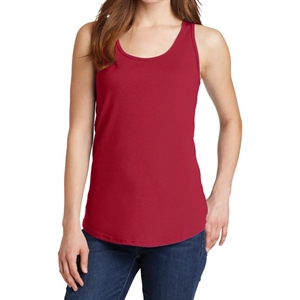 Ladies cotton tank top in assorted sizes with six-color imprint.
