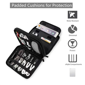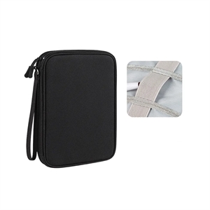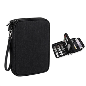 9.45" x 6.3" x 0.8" travel organizer with double compartments, mesh pockets, a zippered mesh pocket, an outer pocket, and more.