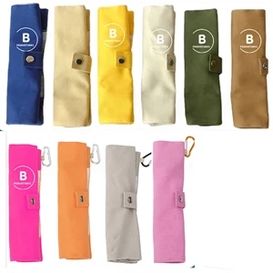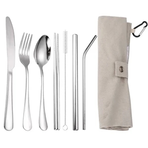 This 7 in 1 stainless steel travel cutlery set with neoprene case including spoon, fork, knife, straw and cleaning brush.