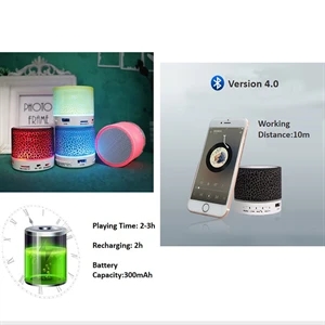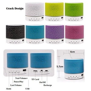 6cm x 6cm x 5.7cm round plastic Bluetooth wireless speaker with USB and TF card support.