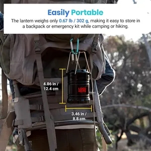 Bright, collapsible LED lantern with handles for camping, hiking, and emergencies. Compact, lightweight, and customizable with you