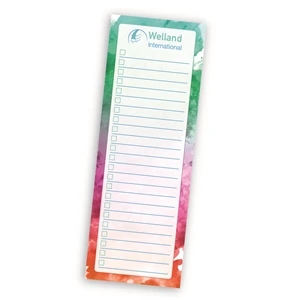 3" x 8" custom printed notepad with 25 or 50 white sheets and 4-color process customization.