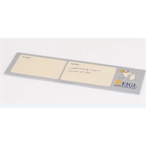 Custom printed organizational note pad that measures 10" x 3" with 50 sheets.