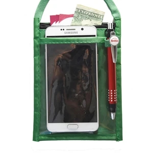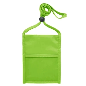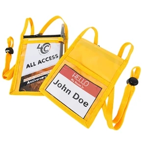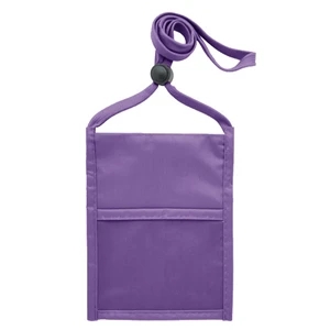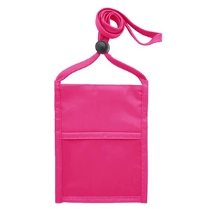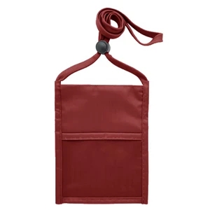 Popular Neck Wallet w/ top zipper, front and back window, and adjustable 3/8" Printed Lanyard.