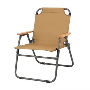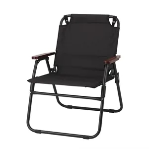 Our Premium Folding Camping Chair combines durability and comfort with a sturdy steel frame, canvas fabric, and wooden armrests.
