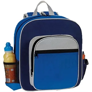 Durable 600D polyester. 11"W x 12.5"H x 4.5"D. Double zipper main entry. Mesh side pocket. Adjustable shoulder strap. Sturdy handl
