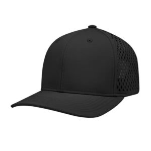 6 panel performance cap with adjustable self-material strap and sliding buckle.
