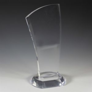 4 3/4" x 9 1/2" x 3/4" clear acrylic award on rounded and beveled acrylic bases.