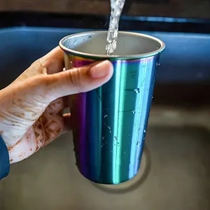3.54" x 4.95" stainless steel 16 ounce stackable party cups with rainbow