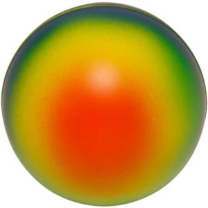 2.5" polyurethane stress ball with a rainbow design sold blank or with silkscreened imprint.