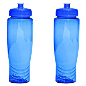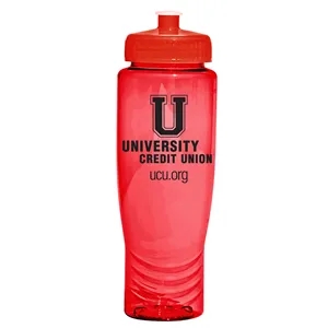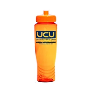 28 oz. translucent plastic bottle with push-pull twist-on cap, wide mouth opening and ounce gauge molded into the back.