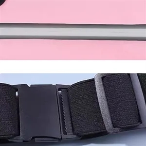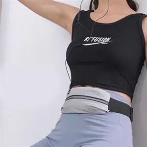 Slim running waist pack with reflective strip, water-resistant zipper, earphone port. Great for fitness, travel, safety events.