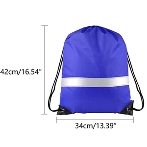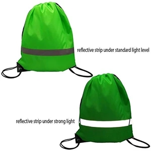 17" x 14" drawstring backpack with a reflective strip.