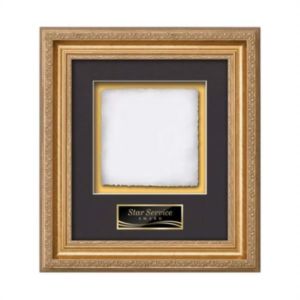 Cast Paper award framed in our exquisite Regal molding with your choice of 2 standard mattes and a personalization plate.