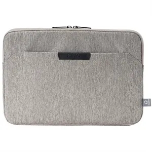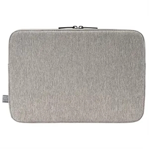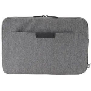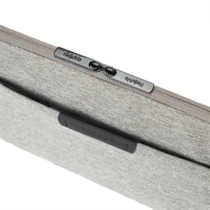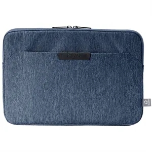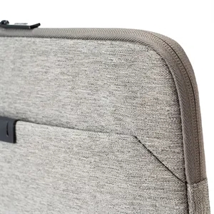 Sustainable RPET 600D slim laptop sleeve fits 15." devices, 9" front zip pocket, double-zip main compartment, durable metal puller