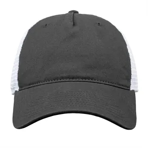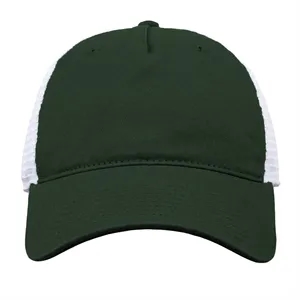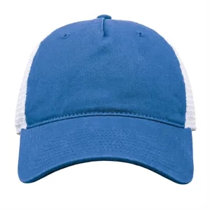 Relaxed soft trucker cap with cotton front, breathable mesh back, adjustable snapback, and lightweight comfort.