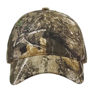 Realtree camo cap with relaxed unstructured fit, durable twill, and adjustable slide buckle for outdoor and casual wear.