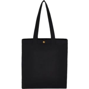 4.5" x 15" x 14" recycled cotton canvas tote bag with snap closure.