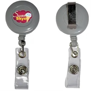 Retractable 30" nylon cord badge reel holder with belt clip.