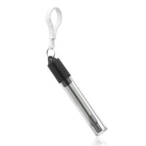 Retractable straw made of stainless steel in a case with a brush for cleaning.