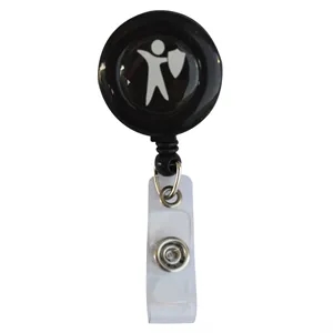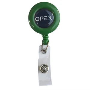 Full Color Polydome,UV printing; 24" retractable cord; Metal belt clip backing; Vinyl snap strap