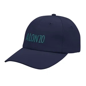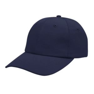 6 panel cap made from recycled polyester with a hook and loop closure.