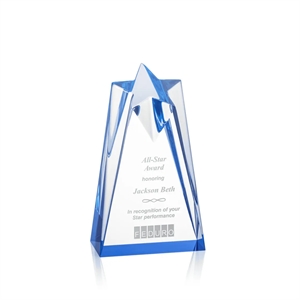 The stunning freestanding Rosina Acrylic award in Blue presents excellence with a star peak that tapers down each vertex.