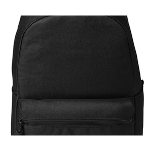 Backpack with a front zip pocket, interior organizer, zipper pull tabs, laptop sleeve, loop, water bottle pocket, and more.