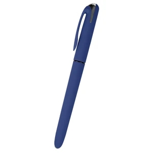 Gel pen with rubberized barrel, removable cap and pocket clip.