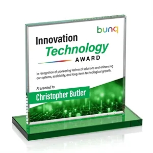 Bold Sahara VividPrint™ Award features a 0.5” thick Starfire crystal mounted on a vibrant flat-edged base.