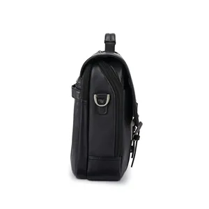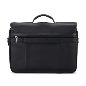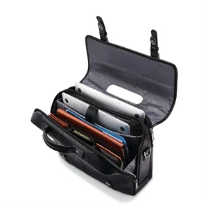 Samsonite Classic Leather Flapover Satchel with dual laptop pockets, magnetic snaps, and SmartSleeve™ for work and travel