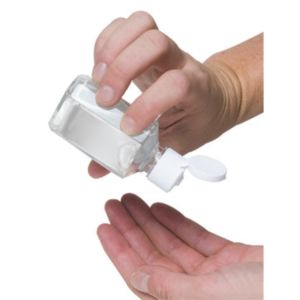 1 oz. polypropylene plastic flip-top bottle of citrus scented antibacterial hand sanitizer gel.