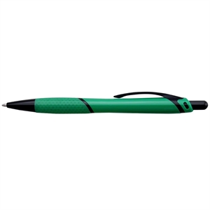 Durable Preston Rubber Grip & Clip Ballpoint Pen; Features colored barrel and textured colored rubber; Black ink available