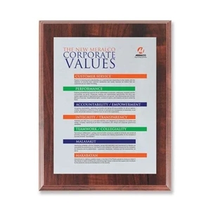 Screenprint your artwork in vibrant color on an aluminum plate mounted to our walnut plaque with cove edges