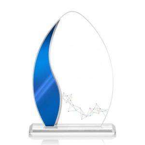 The Sherborne Starfire Crystal VividPrint™ Award features an elegant Blue Metallic accent