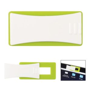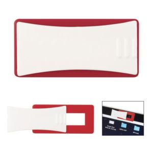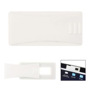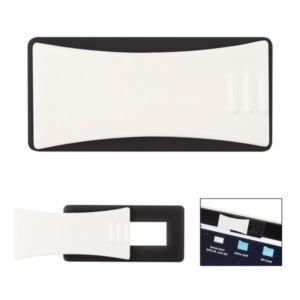Slider webcam cover that attaches over laptop camera with a strong adhesive and slides to reveal or close the lens.