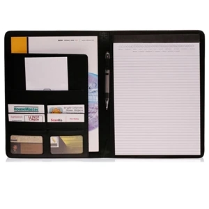 Smooth Surface Portfolio with file pocket, die cut pocket inside, 4 card pockets, 2 ID pockets, pen loop, 10 page ruled memo pad