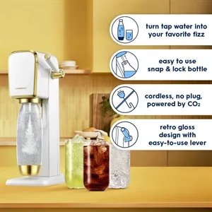 Includes 1L BPA-free bottle and 1 Quick Connect CO2 canisters; Reduces over 120 single-use plastic bottles per cylinder