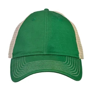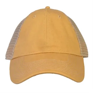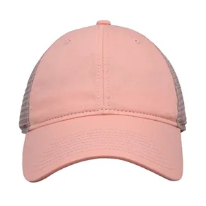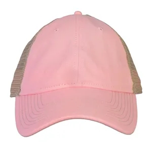 Soft mesh trucker cap with elastic snapback, relaxed unstructured fit, breathable lightweight design for casual wear.